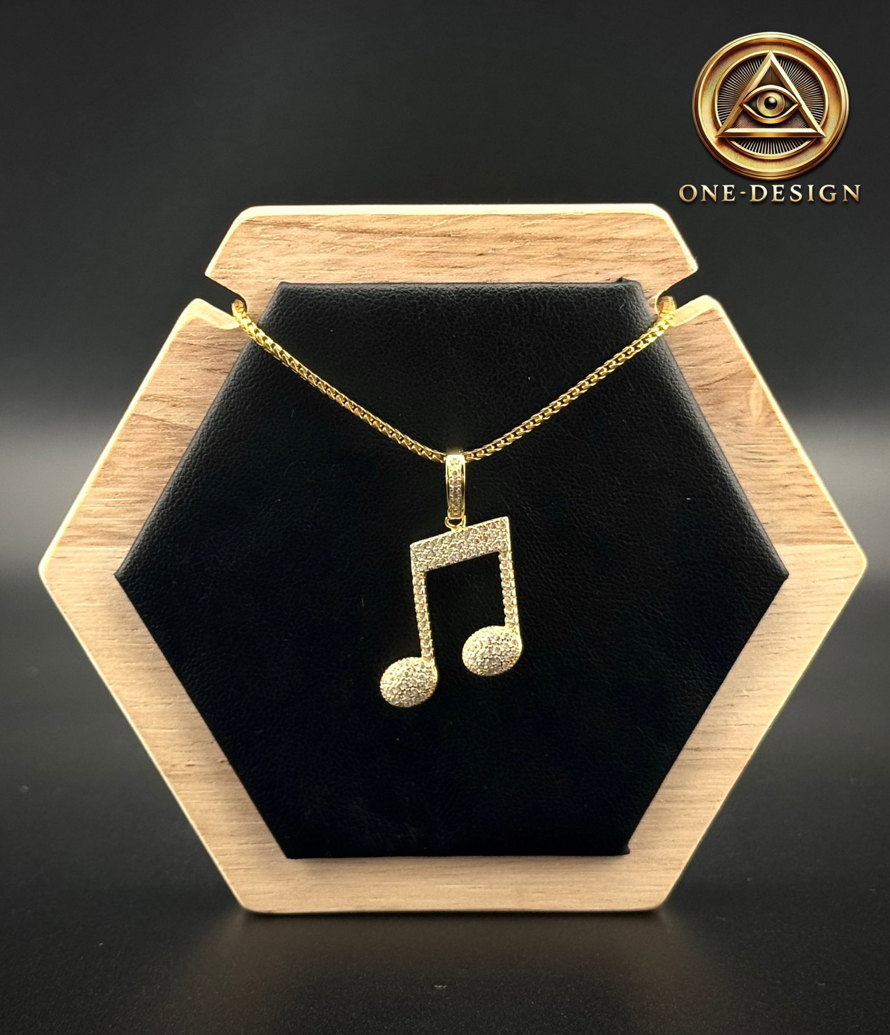 Disfruta en grande con nuestra corchea de plata 925 bañada en oro, llena de piedras brillantes. Ideal para los amantes de la música, incluye una cadena de 1mm para un look completo. ¡Haz que tu pasión por la música brille con esta pieza única!