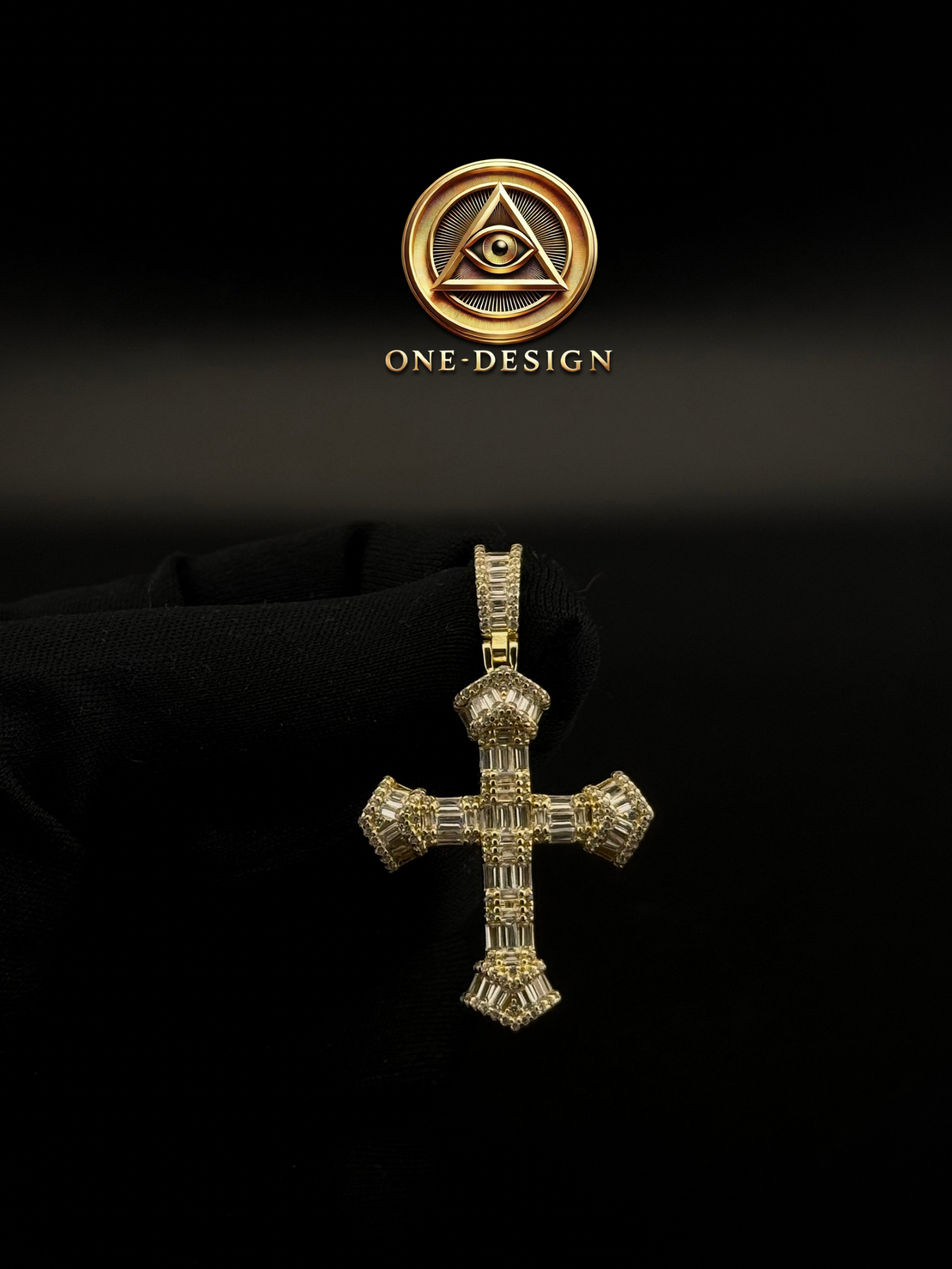 Colgante en forma de cruz elaborado en plata 925 bañado en oro 14k, incluye cadena 1.5mm diseñado con un estilo elegante y sofisticado. Está adornado tipo baguette, lo que le da un brillo excepcional y un acabado lujoso. Su diseño detallado lo convierte en una pieza ideal para quienes buscan un accesorio con significado y distinción.