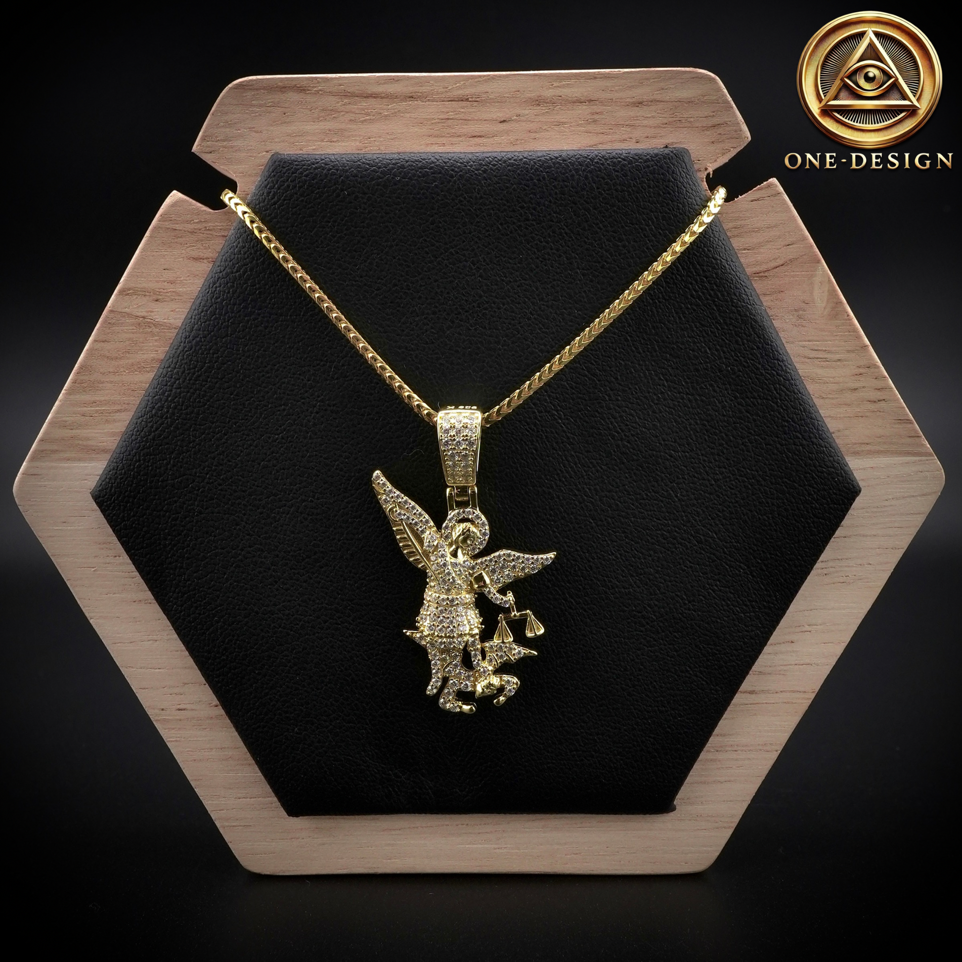 Descubra la belleza divina con nuestro colgante Archangel, hecho en plata 925 baño de oro con cadena de 1.5mm. Este hermoso ángel está cubierto de piedras brillantes, lo que brinda un toque de elegancia y un recordatorio constante de la protección celestial. Añada un toque de brillo a su atuendo con el Archangel.