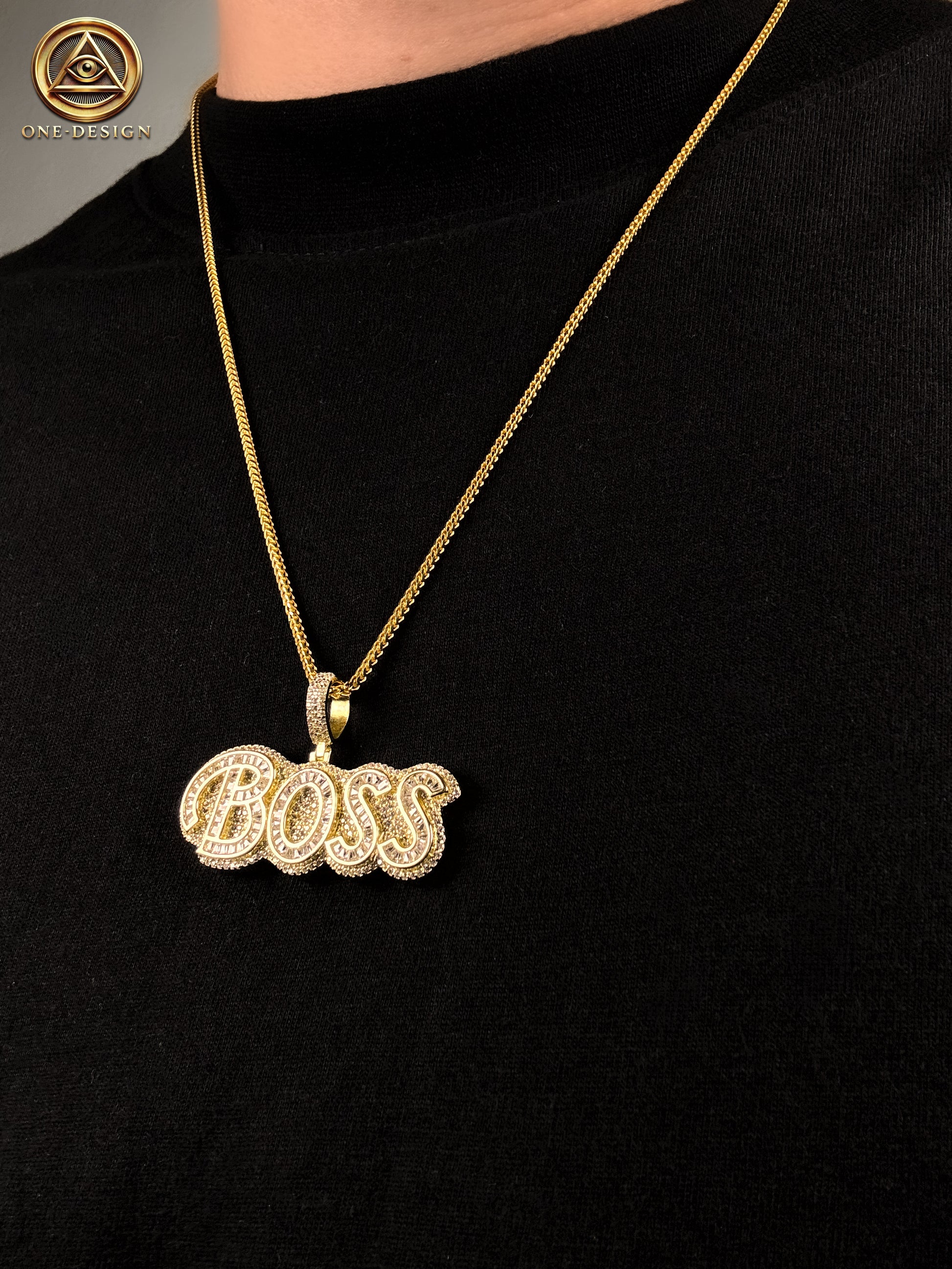 ¡Domina el juego con BOSS! Este collar de plata ley 925 baño en oro 14k es perfecto para demostrar tu poder y liderazgo.