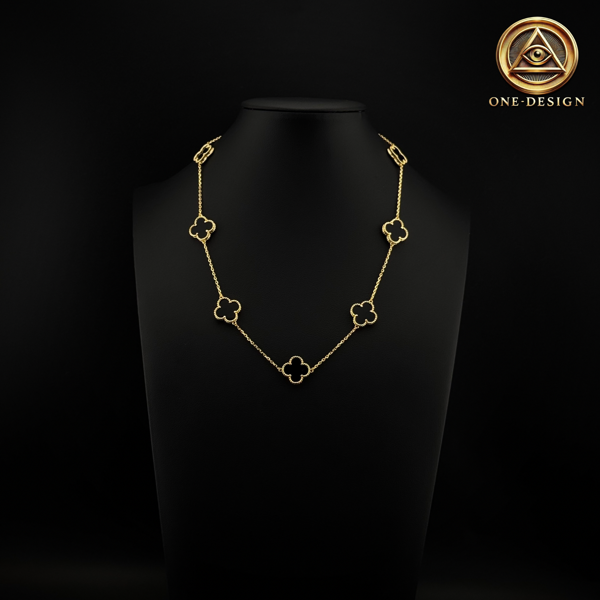 Este hermoso collar ajustable de trébol confeccionado en plata 925 y bañado en oro, brinda un toque de glamour y abundancia gracias a sus 3 colores diferentes: blanco, negro y verde. Un toque de elegancia para cualquier atuendo. Hecho en plata 925 para mayor durabilidad.