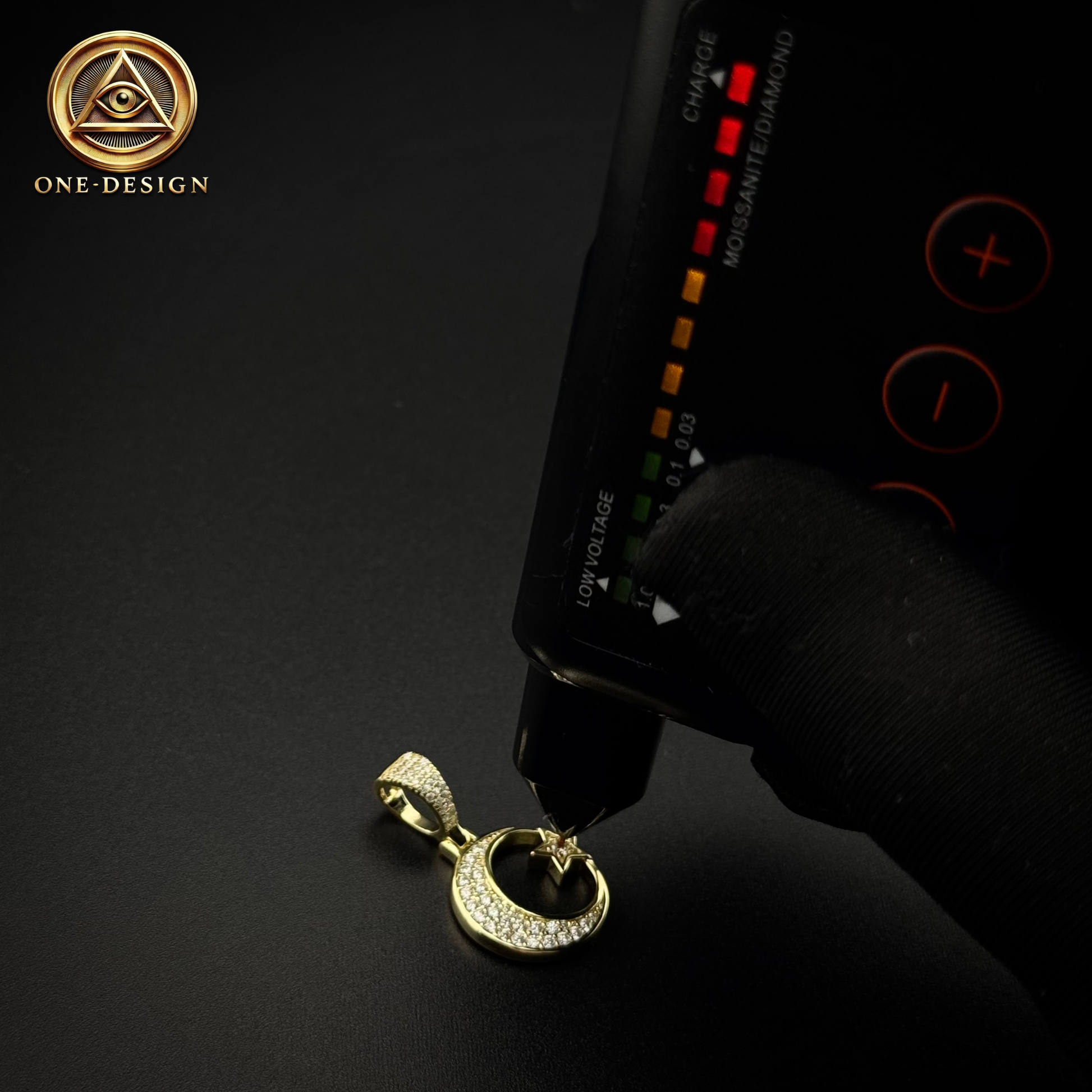 ¡¡Ilumina tu noche con la hermosa Moissanite star moon! Hecho con piedras Moissanite y plata ley 925 bañado en oro de 14k o plata ley 925, esta joya incluye una cadena de 1.5mm. ¡Brillarás con valor y amor bajo las estrellas!