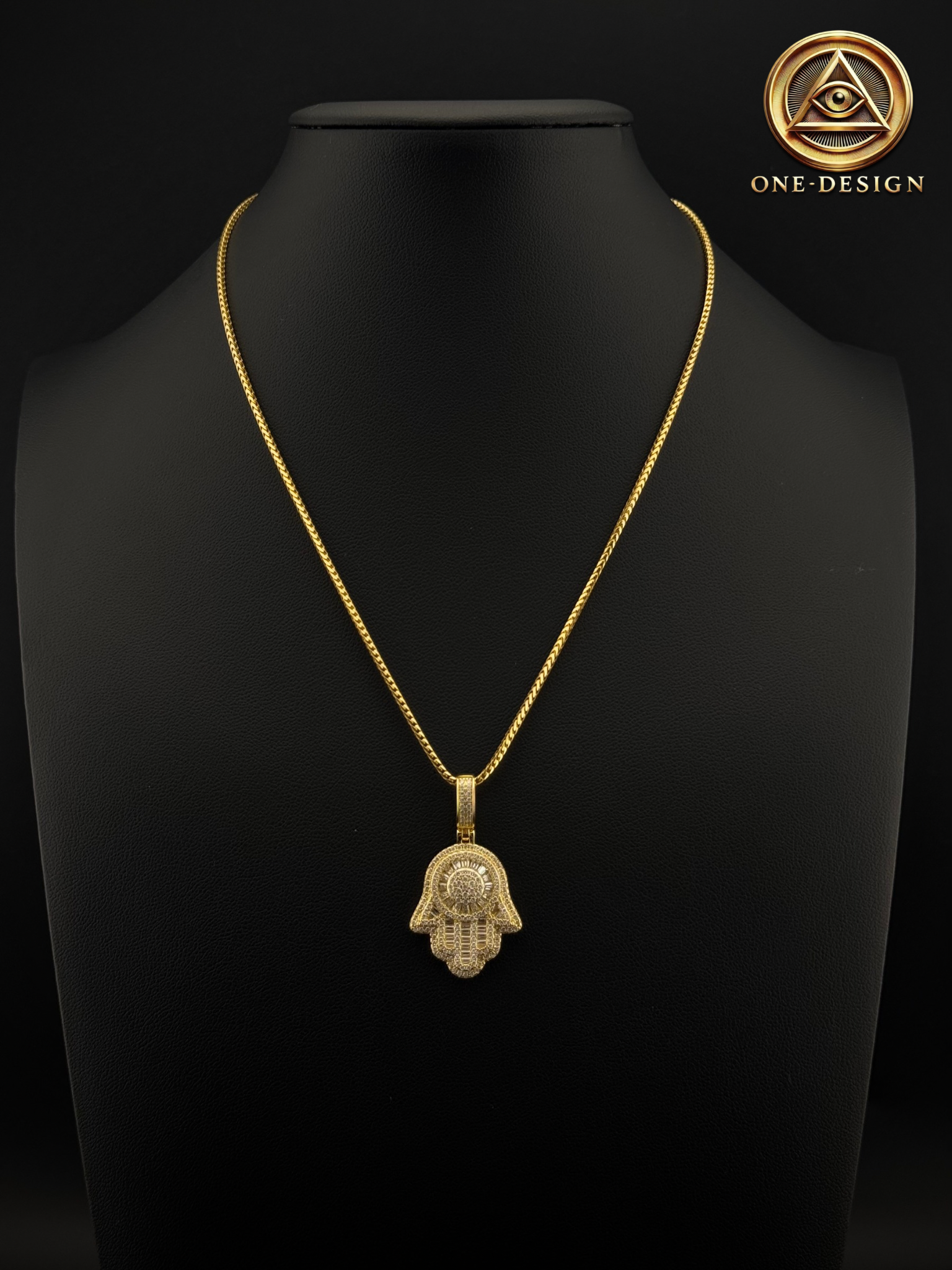 La pieza de plata 925 y plata 925 bañada en oro y completamente hecha de Moissanite es una excelente opción para incorporar el poder protector del hamsa en tu look. Su diseño elegante y la utilización de plata 925 garantizan una joya de alta calidad y durabilidad. Además, el uso de Moissanite aporta un brillo incomparable y un toque de lujo a tu estilo. Mejore su colección de joyas con esta hermosa pieza, incluye cadena 1.5mm.