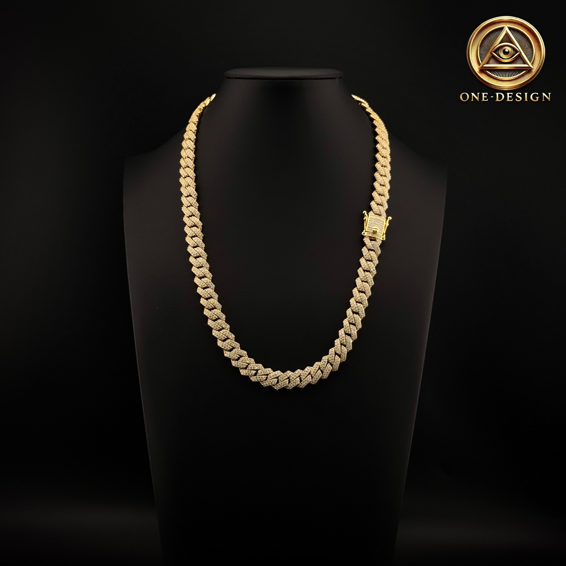 Cuban Ice Out largo 20” 10mm, elaborada en plata 925 baño de oro 14k, diseñada para quienes buscan un accesorio llamativo, lujoso y lleno de brillo.