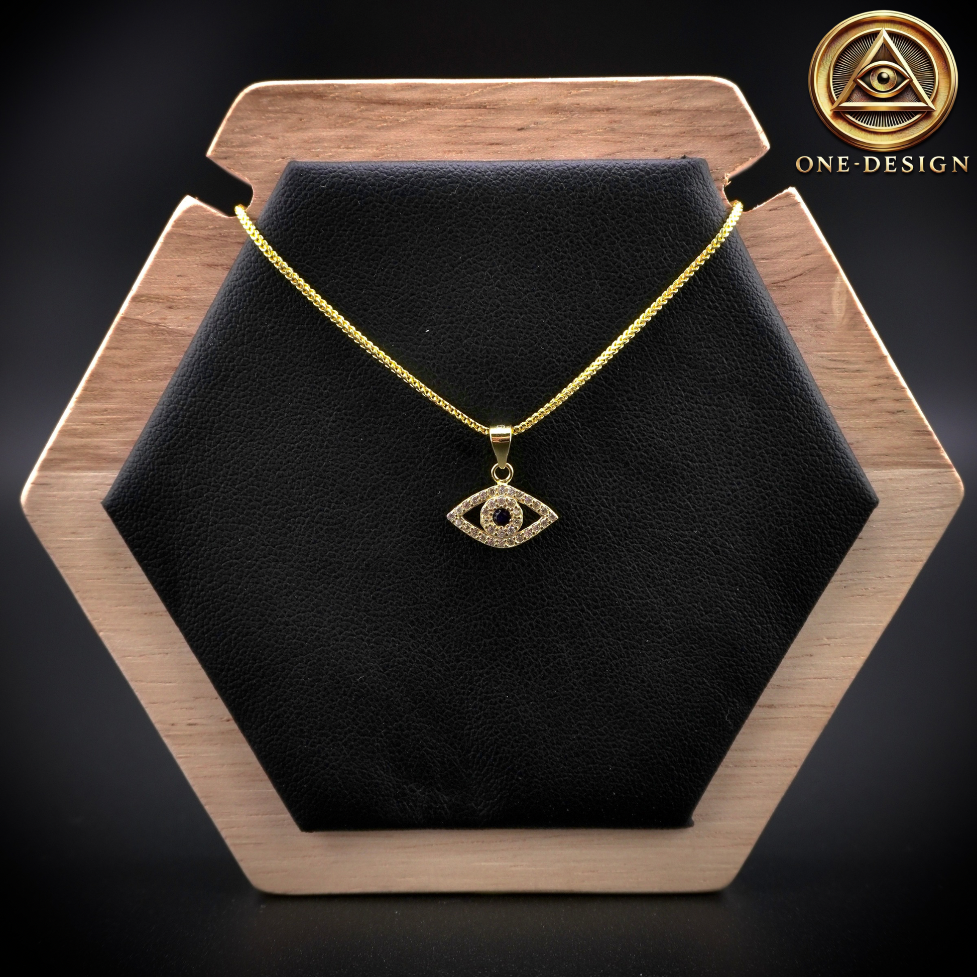 Esta pieza de ojo minimalista está hecha de plata 925 con un baño de oro y viene con una cadena de 1mm incluida. Esta hermosa y distintiva pieza de joyería es perfecta para cualquier ocasión y añadirá un toque de estilo a cualquier atuendo. Haz una declaración audaz y elegante con nuestro collar Eye.