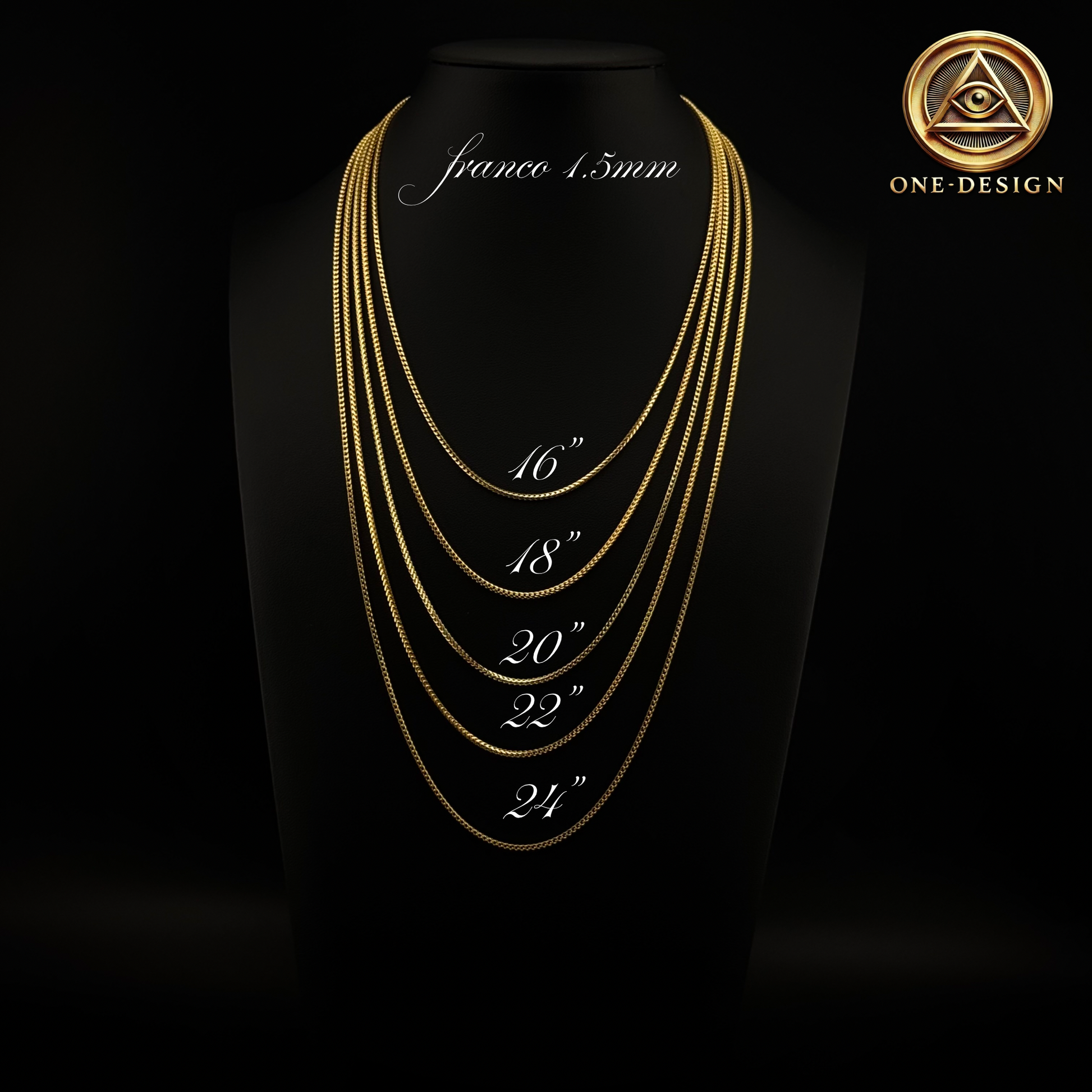 Este collar Franco de 1.5mm está hecho de plata 925 y plata 925 baño de oro, lo que lo hace perfecto para un look de lujo discreto. Puede usarse solo o combinado con diferentes colgantes para un estilo versátil. Hecho con materiales de calidad para una mayor durabilidad, elige tu mejor color.