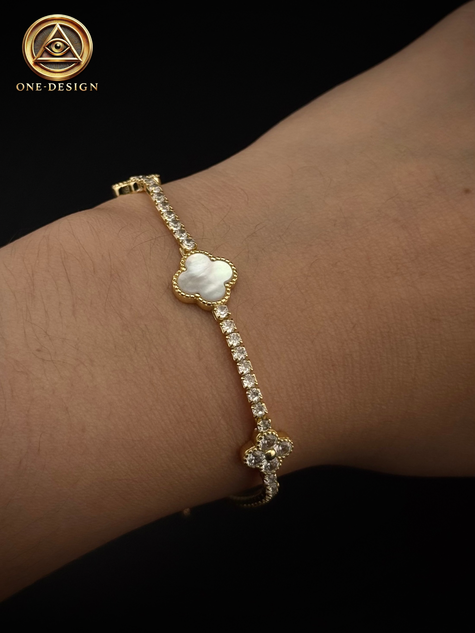 ¡Luce un brillo y lujo incomparable con nuestra exclusiva pulsera de clover! Hecha en plata 925 baño de oro, su diseño ajustable y piedras brillantes en todo su contorno te dará un look sofisticado y elegante. Las hojas llenas de brillo son un detalle único e irresistible. ¡Atrévete a destacar con esta pulsera única!
