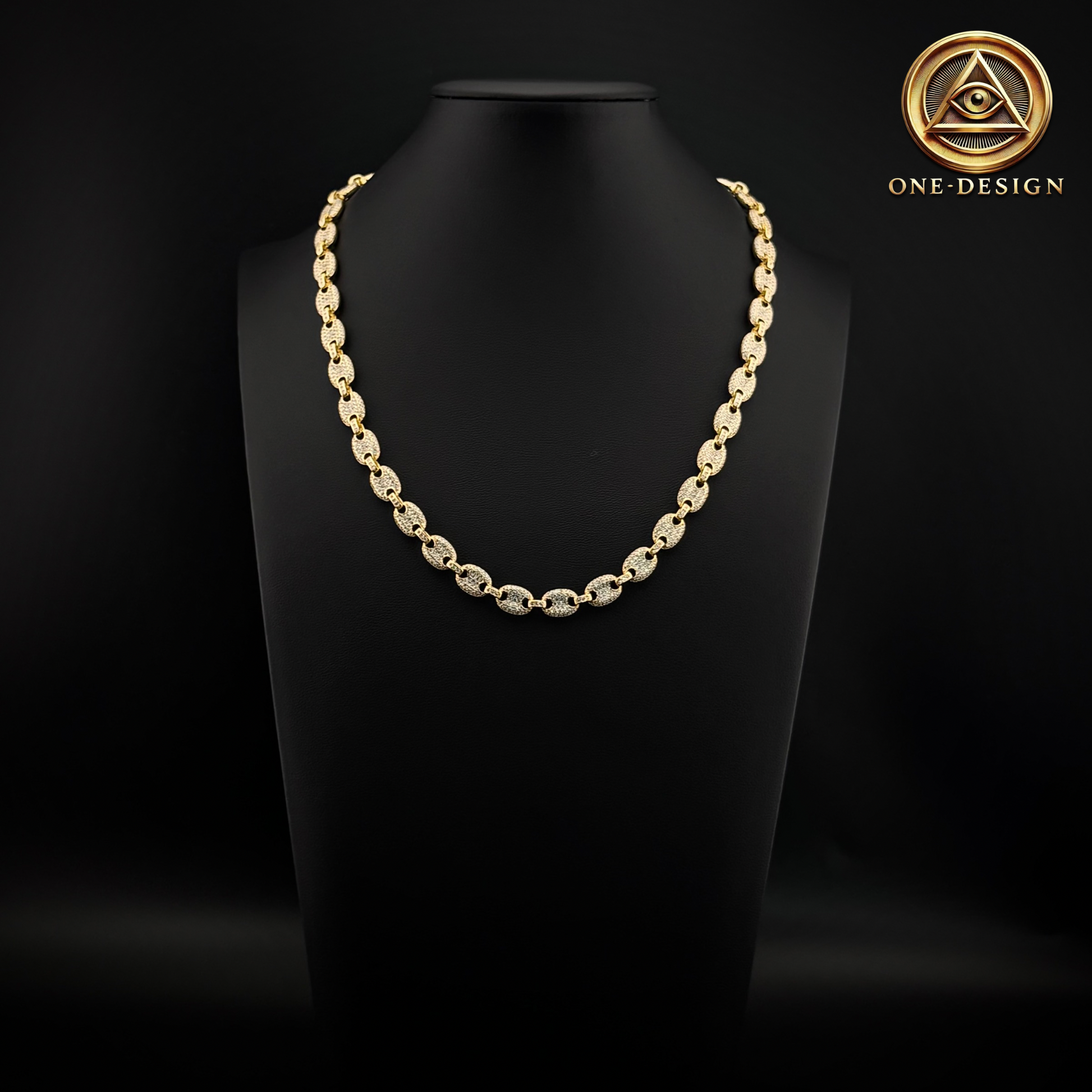 Chain GG largo 20” 8mm elaborada en plata 925 baño de oro, perfecta para quienes buscan un accesorio elegante, exclusivo y con un diseño sofisticado y único.
