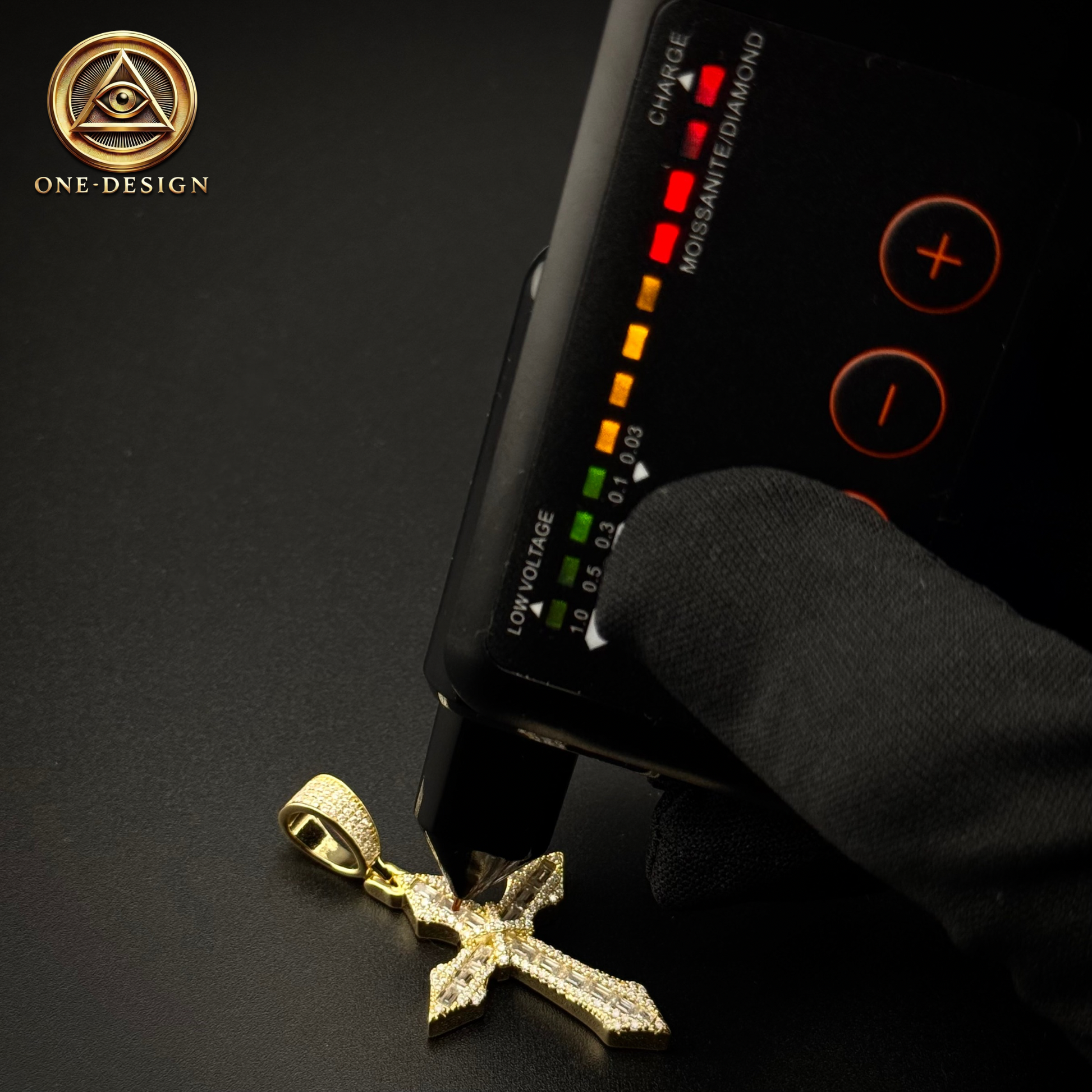 Esta cruz de Moissanite es una pieza magnífica que combina el lujo único,Hecha completamente de Moissanite plata 925 o plata 925 baño de oro 14k, incluye una cadena de 2.5mm largo 22” para un ajuste perfecto. Esta cruz única es el complemento perfecto para un atuendo de alto nivel.