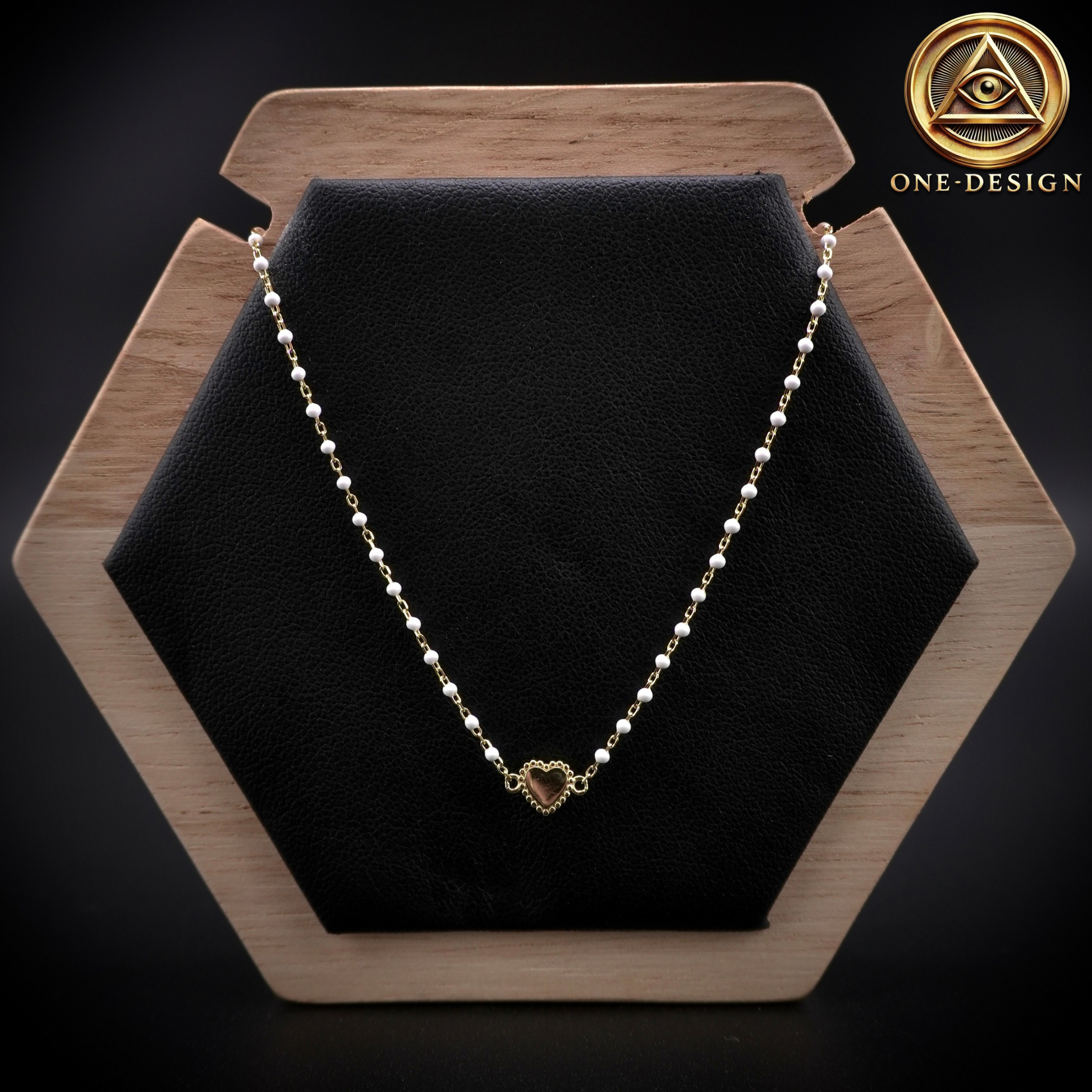 El collar fino con corazón blanco es la adición perfecta a cualquier atuendo. Hecho de plata 925 acabado en oro, este collar es elegante, ajustable y duradero. El corazón blanco es un símbolo de amor y pureza, haciendo de este collar un regalo significativo para alguien especial. ¡Haz una declaración con este hermoso collar!