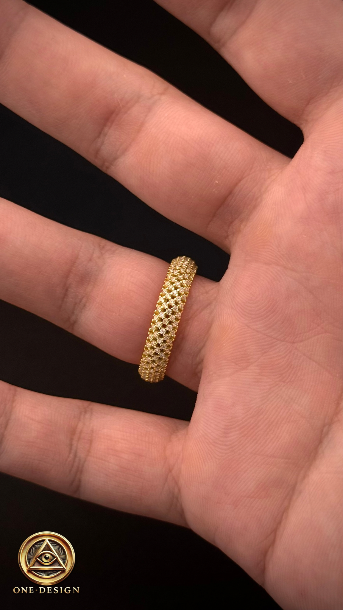 Este exquisito anillo de Moissanite está elaborado en plata ley 925 con un baño de 14k y decorado con piedras de Moissanite. Cada piedra brilla con un resplandor único y lujoso un tamaño perfecto y minimalista.