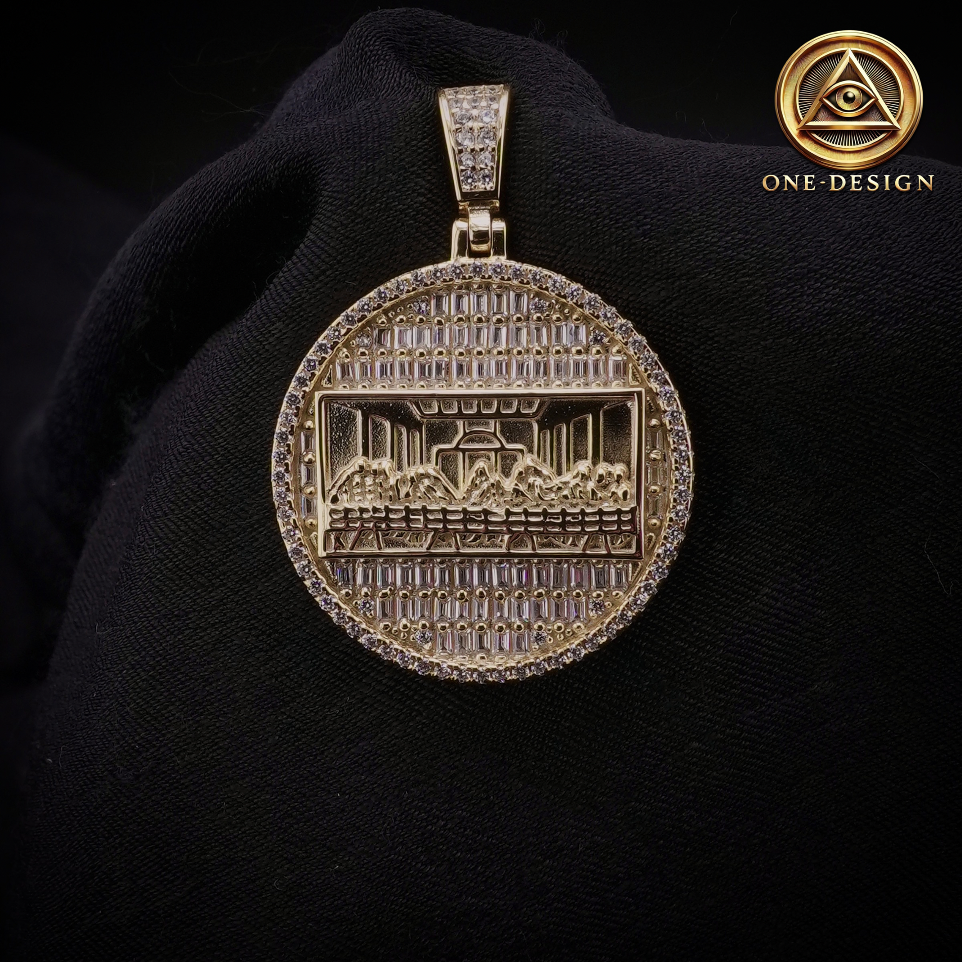 "Esta hermosa santa cena está hecha en plata 925 con baño de oro 14k, incluye una cadena de 1.5mm Las piedras estilo baguette le dan un brillo único para una apariencia elegante y sofisticada. Perfecta para llevar contigo la fe en todo momento."