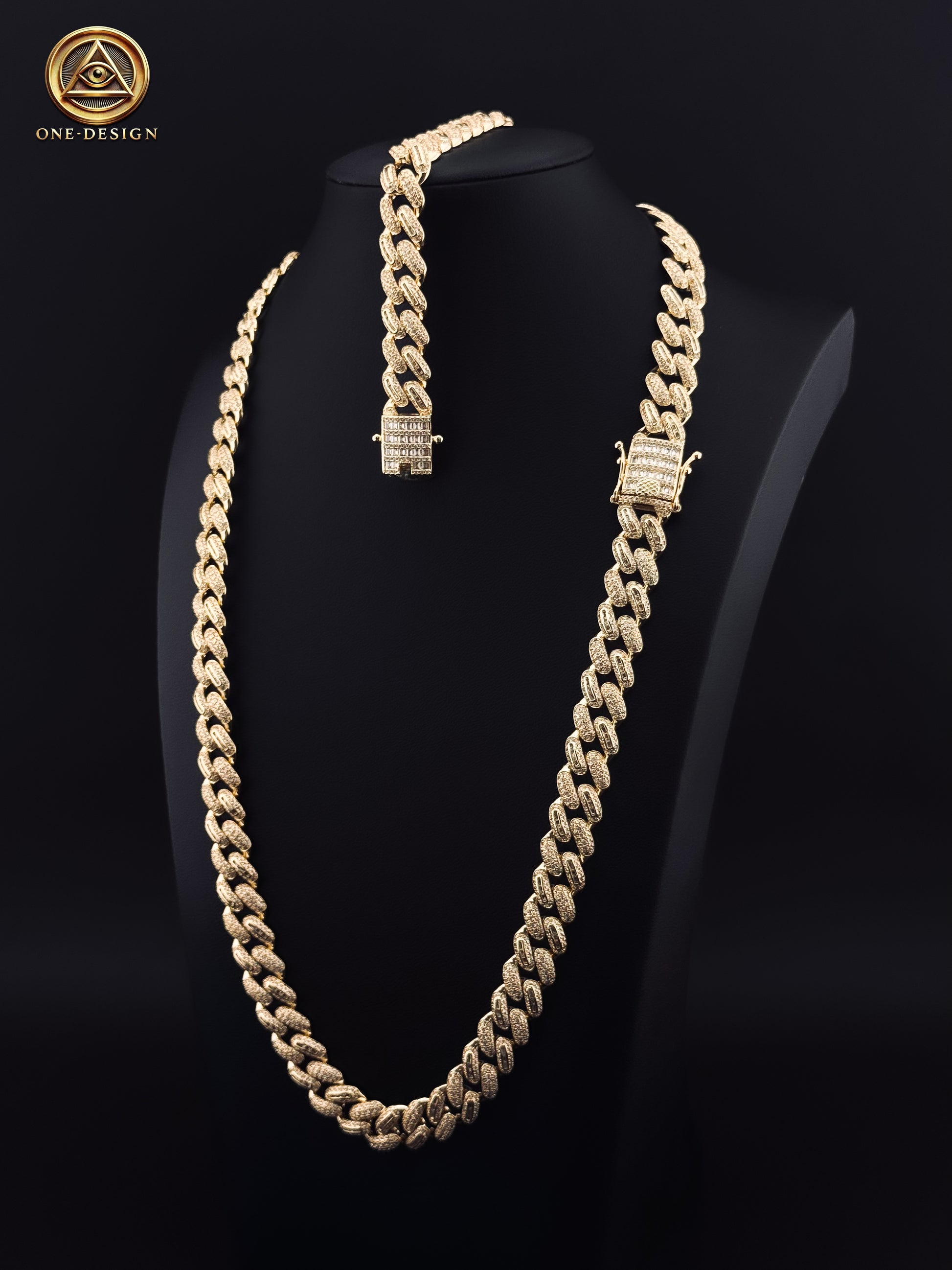 ¡Sé el centro de atención con este set cubano de cadena y pulsera de 12mm! Con piedras corte baguette y desbordado de piedras brillantes, ¡serás el más impresionante en cualquier evento!