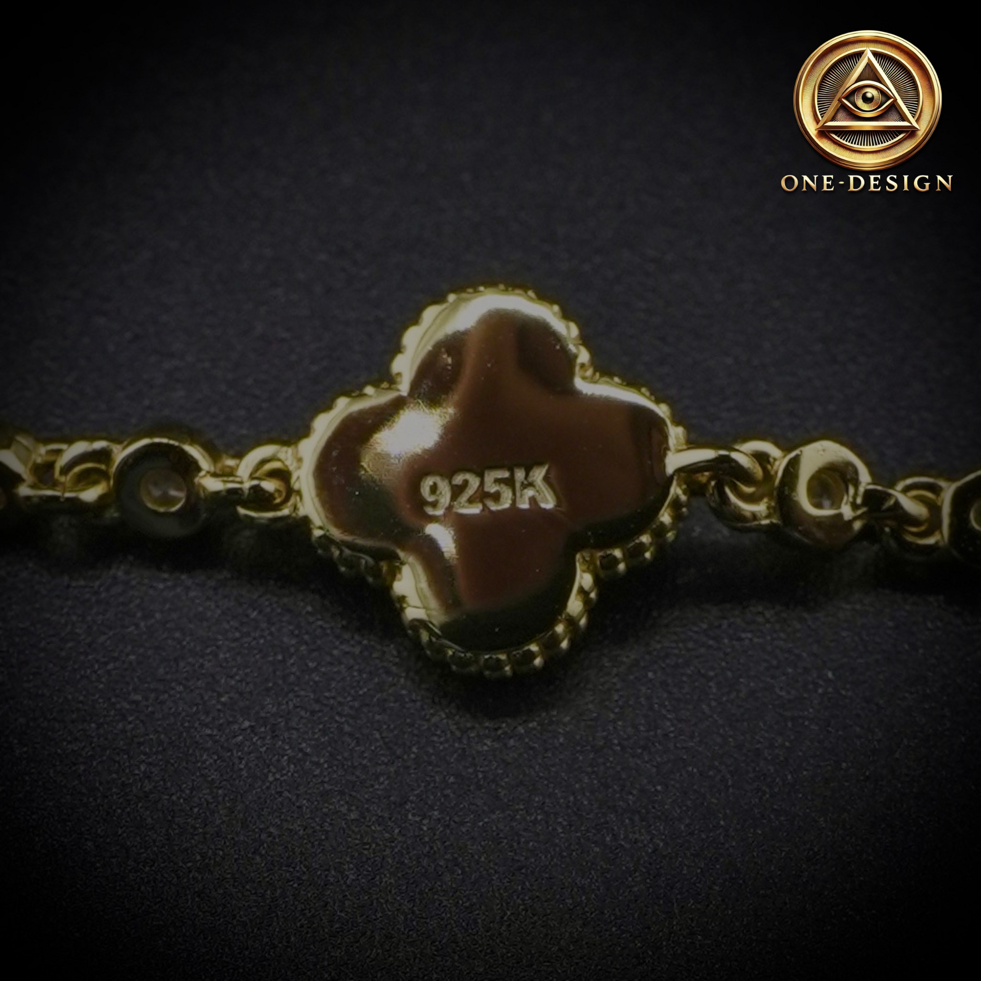Pulsera ajustable de trebol con piedras, elaborada en plata 925 con baño de oro, diseñado para quienes buscan un accesorio elegante y con un toque de brillo y distinción.