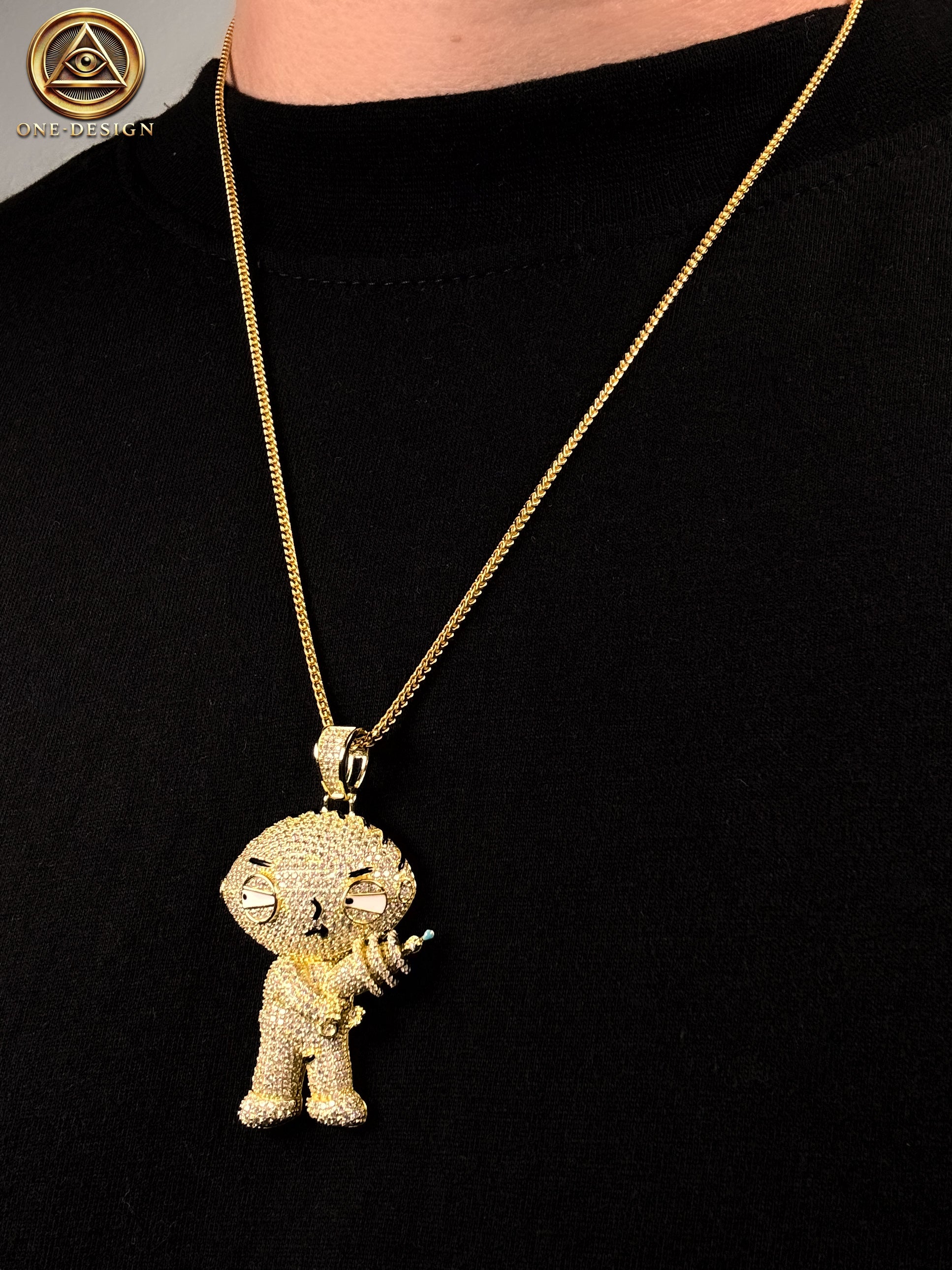 Stewie Ice Hecho en Plata ley 925 baño en oro 14k, cada pieza es una muestra de calidad. Con un acabado brillante y resistente.