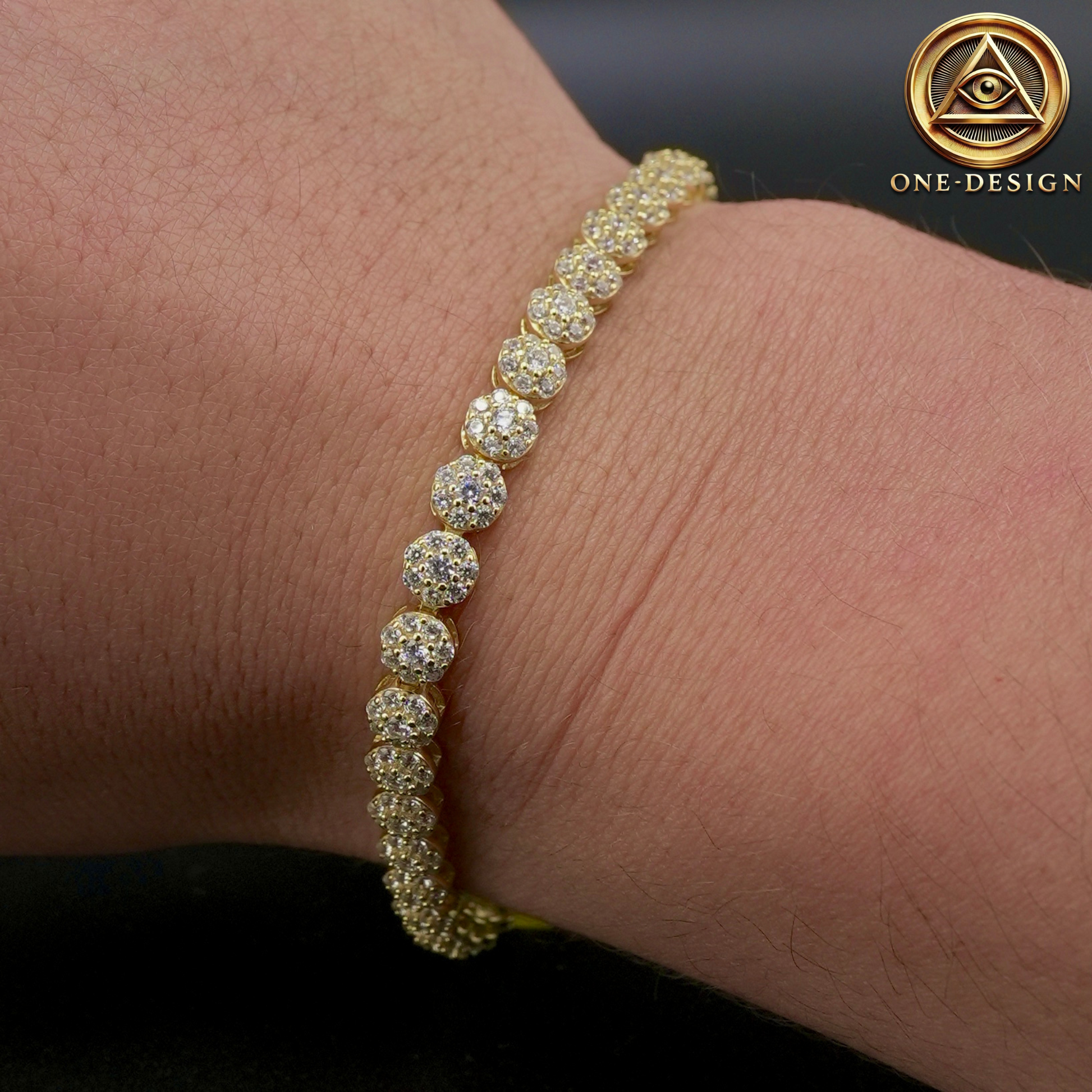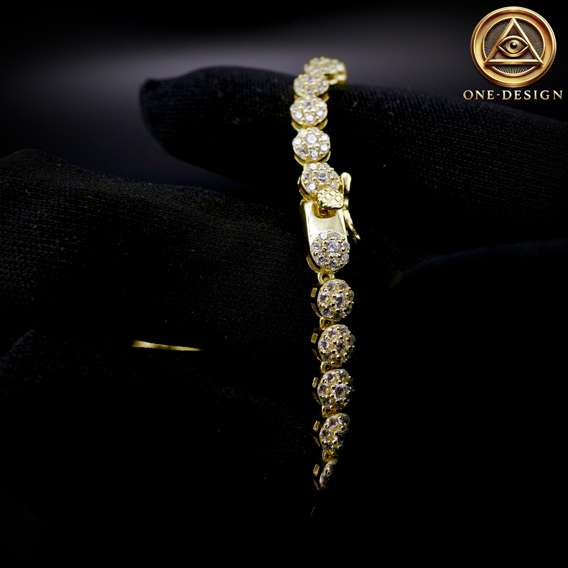 Pulsera tipo tennis 5mm con piedras, elaborada en plata 925 con baño de oro, diseñada para quienes buscan un accesorio sofisticado y lleno de brillo.
