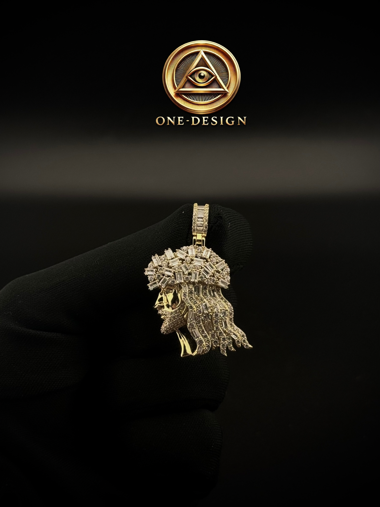 El Cristo hecho en plata 925 con baño de oro 14k es una pieza única y majestuosa con piedras corte baguette en su corona dando un toque de elegancia y significado. Incluye una cadena de 1.5mm para llevarlo con estilo y valor. Conviértete en dueño de esta pieza de gran valor y simbolismo.